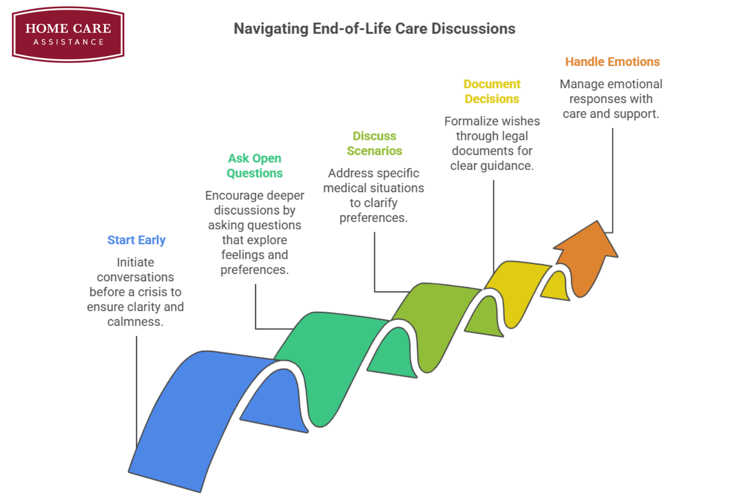 Discussing end-of-life care with senior loved ones ranks among the most challenging conversations we face as families. These discussions require sensitivity, preparation, and courage, but they’re essential for ensuring your aging family member’s wishes are honored. Here’s how to approach these difficult but necessary conversations with compassion and clarity.